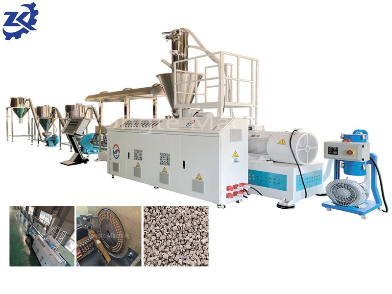 Mieszanina jest transportowana do maszyny granulacyjnej Yongte WPC za pomocą ładowarki śrubowej lub ładowarki próżniowej. Maszyna granulacyjna WPC jest wyposażona w wysokowydajny równoległe wytłaczarkę z podwójną śrubą specjalnie zaprojektowaną do składu z tworzywa sztucznego, szybkiego systemu granulowania lub systemu kruszenia oraz szybki trzyetapowy system chłodzenia powietrza. Stosunek proszku drewnianego może osiągnąć 60–70%, a wytwarzane granulki WPC są równomiernie mieszane i dobrze plastyczne, aby zapewnić jakość produktu końcowego.