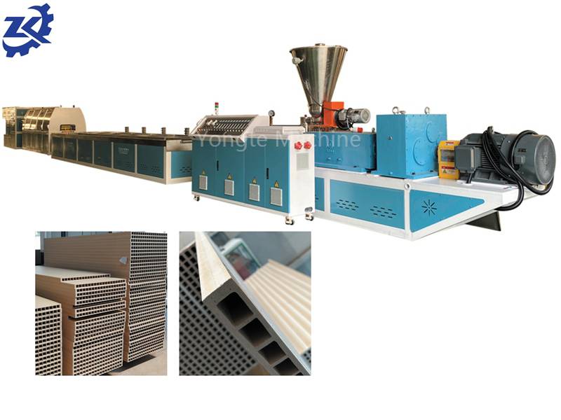 Panel drzwi i maszyna do tworzenia profilu Yongte WPVC to fabryka produkcyjna do tworzenia drzwi WPC, zawiera linię wytłaczania panelu drzwi WPC, maszynę do wytłaczania ramy drzwi WPC, maszynę do laminowania, maszynę grawerowania i maszynę do krojenia.